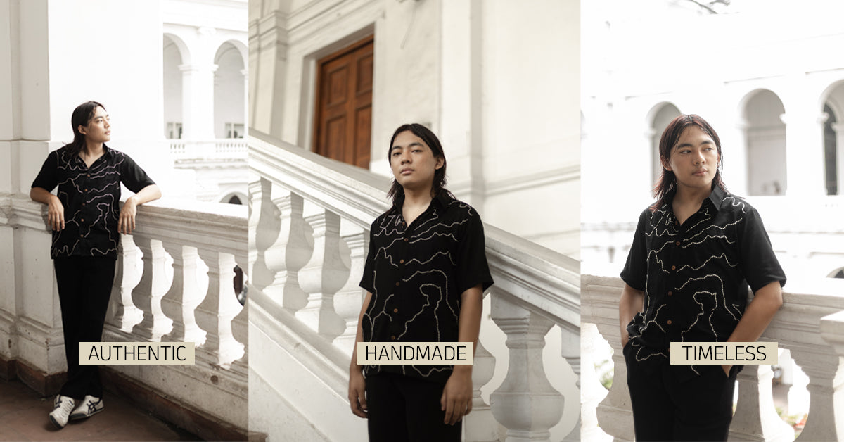 The MANCHITRA Black Shirt tells a story stitched in thread, its Kantha detailing tracing imagined maps of journeys past and future. Crafted by skilled artisans in West Bengal, the shirt blends heritage needlework with a modern silhouette. Its versatile black tone and relaxed fit make it an everyday statement piece that honors craftsmanship.