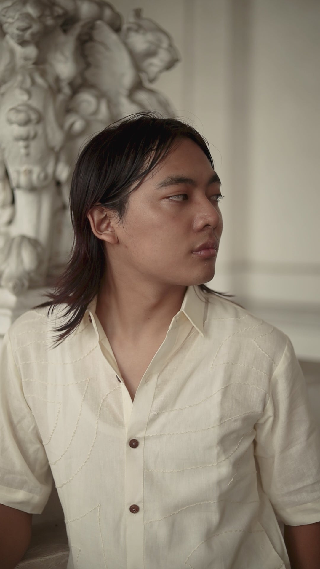 The NOOR White Shirt from CHAKS’s Transit line embodies purity and light. Its crisp cotton-linen fabric is a blank canvas for subtle hand-stitched Kantha work, making it an understated yet luxurious addition to any wardrobe. Designed for comfort and elegance, Noor transitions effortlessly from work meetings to evening gatherings.